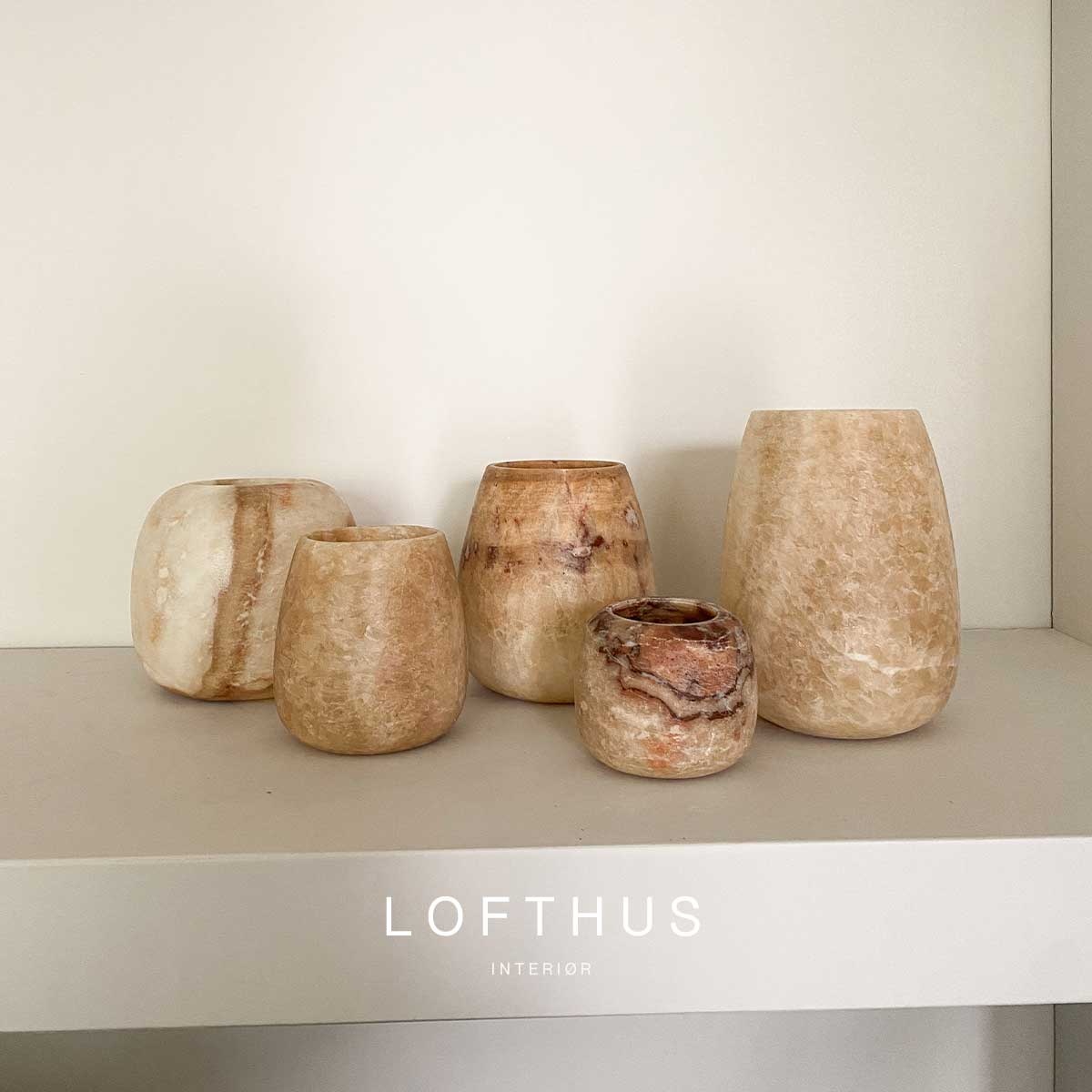 De handgemaakte alabaster waxinelichthouders geven een warm en gezellig licht en zijn in twee kleuren + verschillende vormen verkrijgbaar. Alle vormen, maten en kleuren zijn geweldig om met elkaar te combineren en versterken elkaar juist!