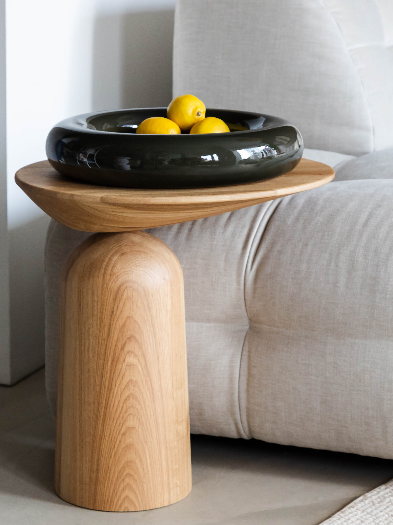 Bijzettafel Drop is een bijzettafel gemaakt van massief eiken. Deze bijzettafels zijn met zorg uitgekozen voor onze eigen 'Lofthus' collectie en kenmerken zich door de prachtige vorm(en) en materialen. Zowel de 'Drop' als de 'Nod' zijn ideale bijzetters voor de bank (kan namelijk gemakkelijk over de zitting geschoven worden), fauteuil of bij een groepje salontafels.