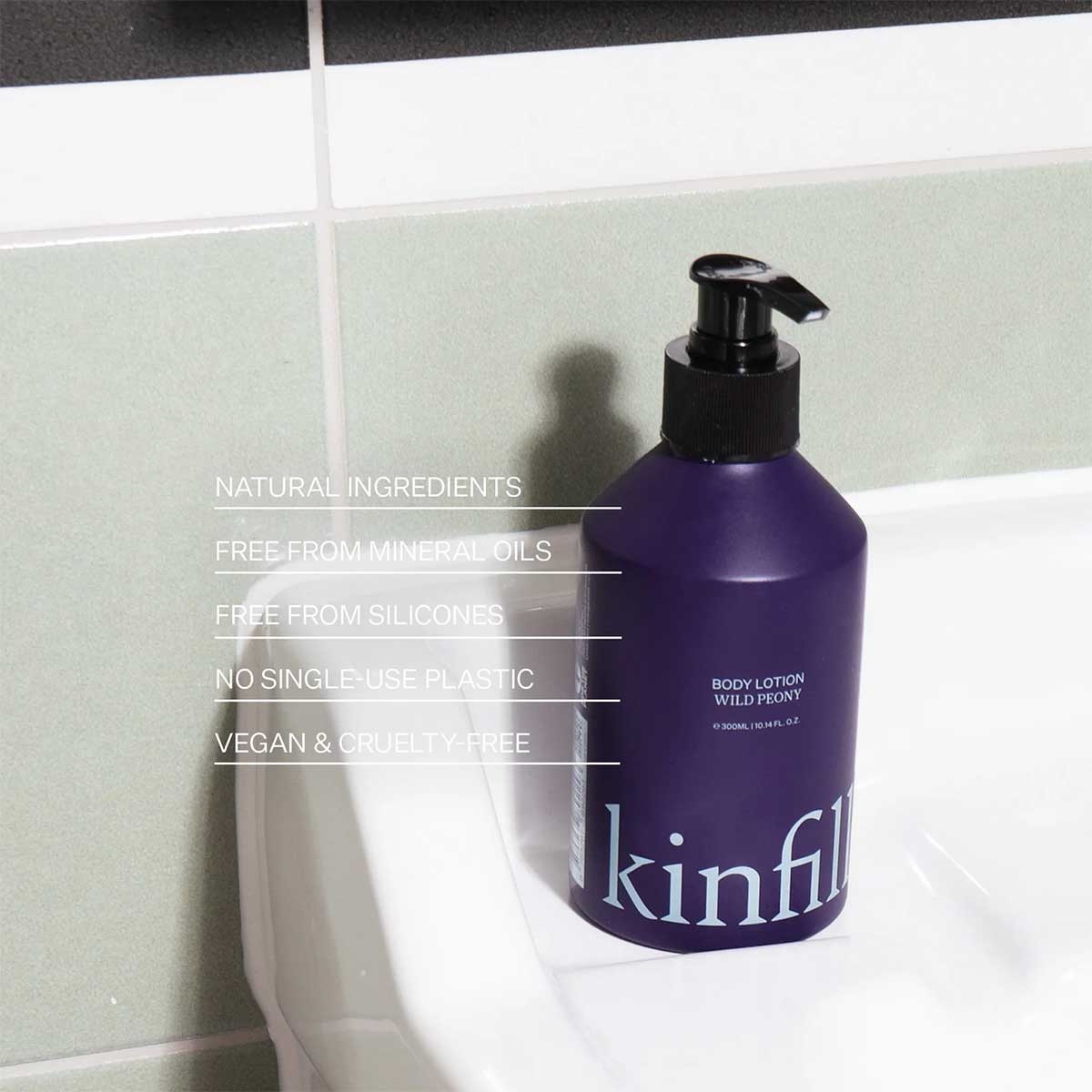 De Kinfill body lotion is een ware traktatie! Deze luxe body lotion zit in een allumium hervulbare forever fles met een fijn pompje. De body lotion heeft drie verschillende geuren met een fijne, zachte textuur. De body lotion is mega duurzaam, verzorgend en zit in een prachtige flacon. Verwen jezelf of een ander met dit heerlijke product!
