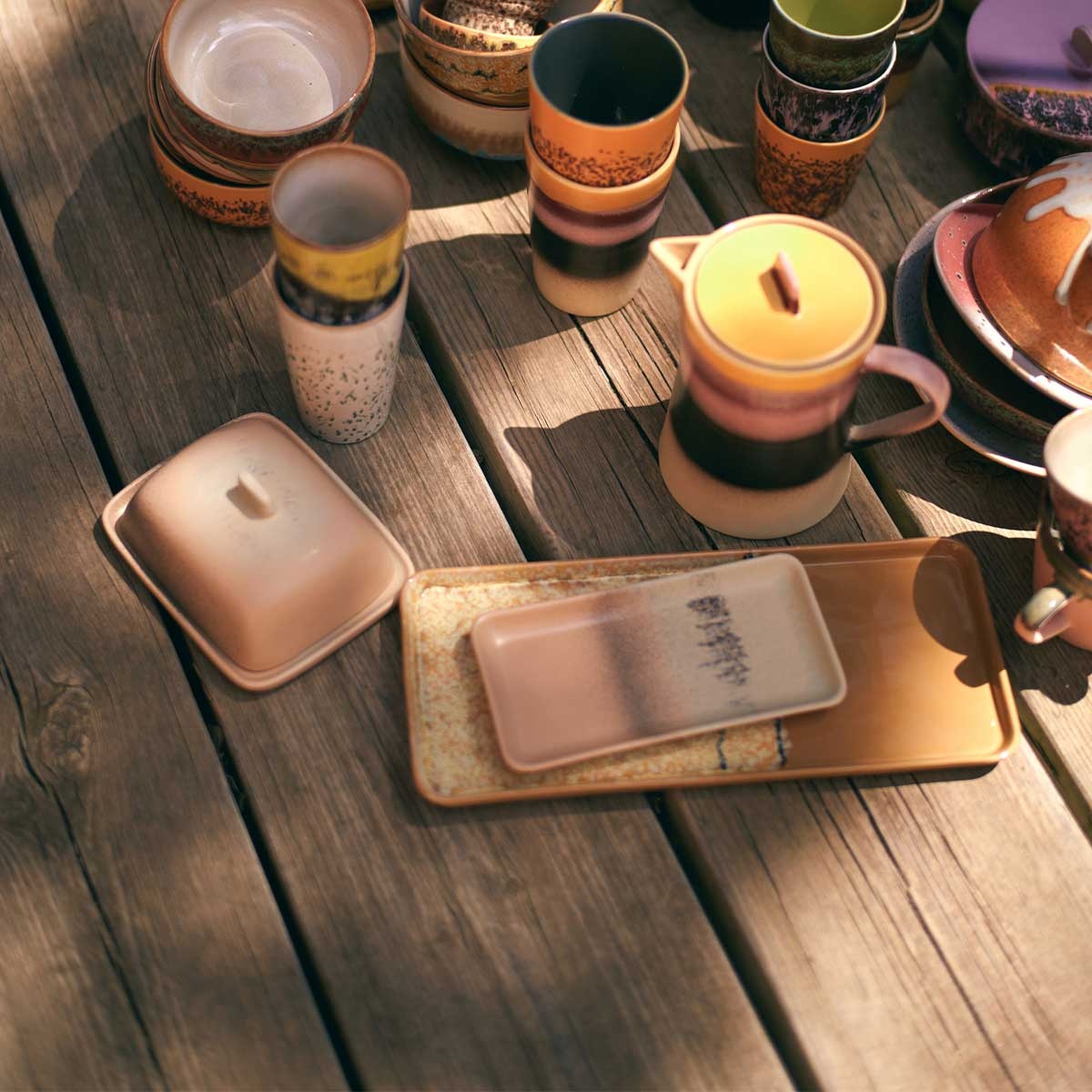 Het HKliving 70's servies is razend populair! De verschillende kleuren zijn juist leuk om met elkaar te mixen en te matchen. Ook zijn er diverse schaaltjes, borden en grotere (koffie)mokken uit deze serie verkrijgbaar. Begin je net met het verzamelen of spaar je al jaren het servies van HKliving? Wat ons betreft kun je er genoeg van hebben/krijgen!