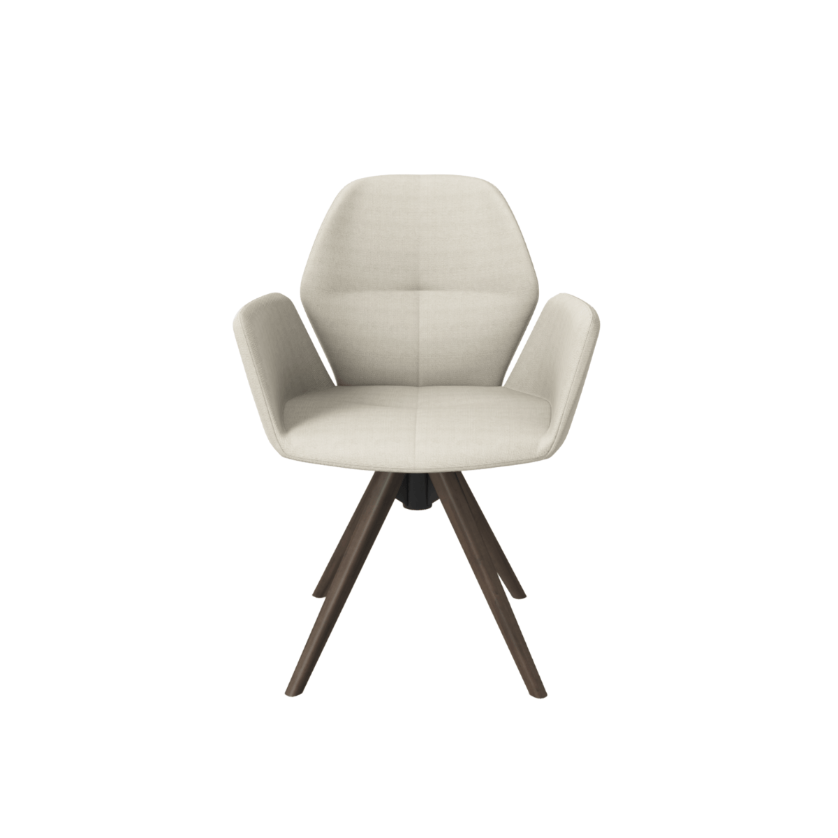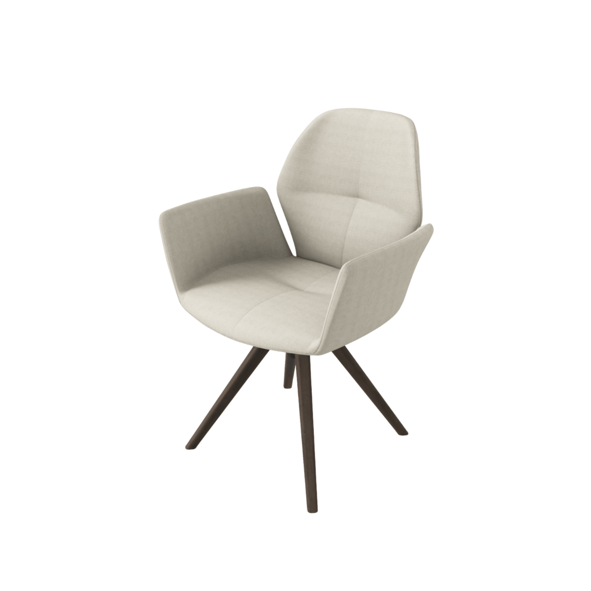 Prachtige, comfortabele eetkamerstoel met een strakke uitstraling. Verkrijgbaar met draaifunctie, houten of metalen poot en in vele kleuren en stoffen.