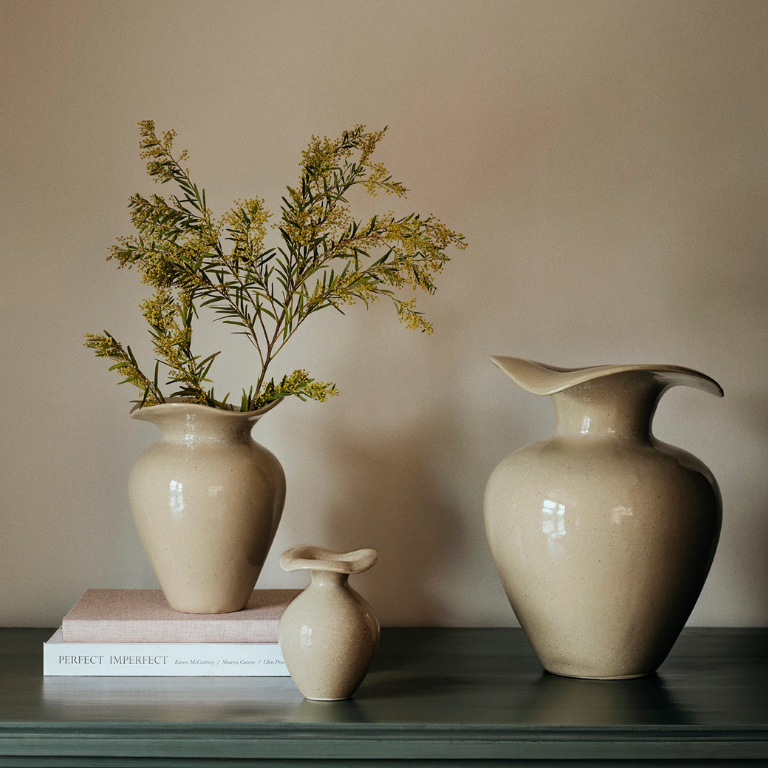 Prachtige, beige bloemenvaas met organische en ronde vormen. Deze vaas is echt perfect voor een bos (kunst)bloemen. Een eyecatcher op tafel!