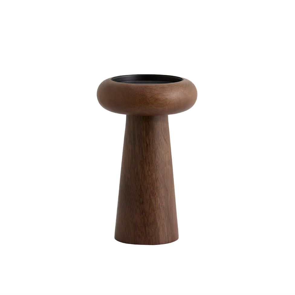 Kandelaar Bawe van Nordal heeft prachtige rondingen en heeft een elegante uitstraling. Met het donkerdere hout geeft hij een luxe en warme uitstraling!