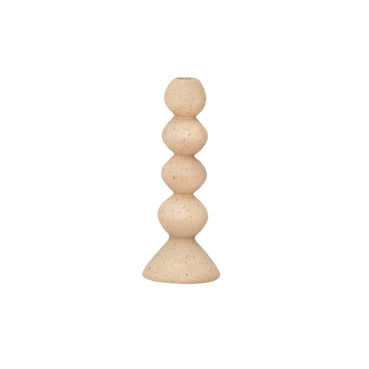 Deze kandelaar met organische vormen en een warme beige gespikkelde kleur is een prachtig object voor in huis!