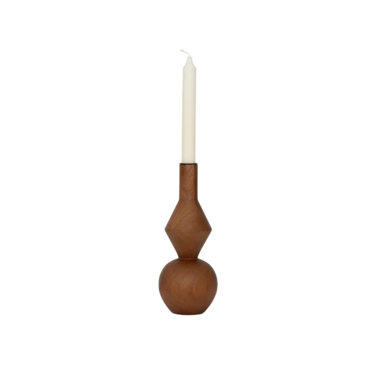 Deze kandelaar straalt warmte en elegantie uit door het geometrische design en de donkerbuine afwerking.