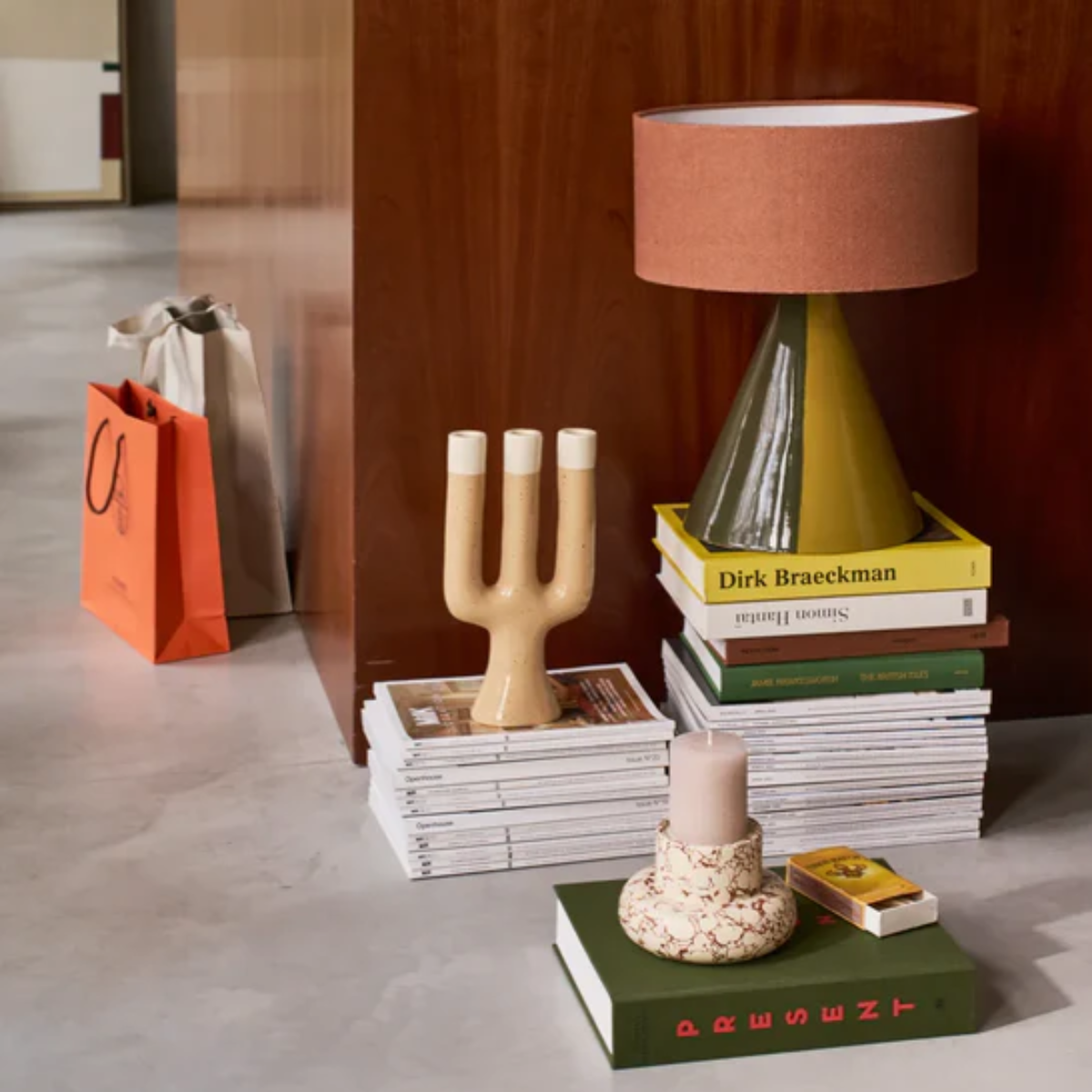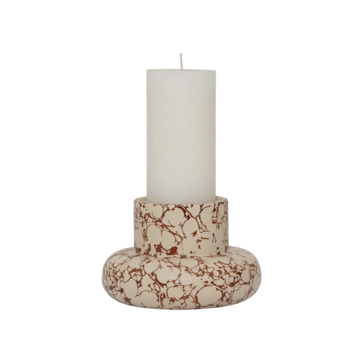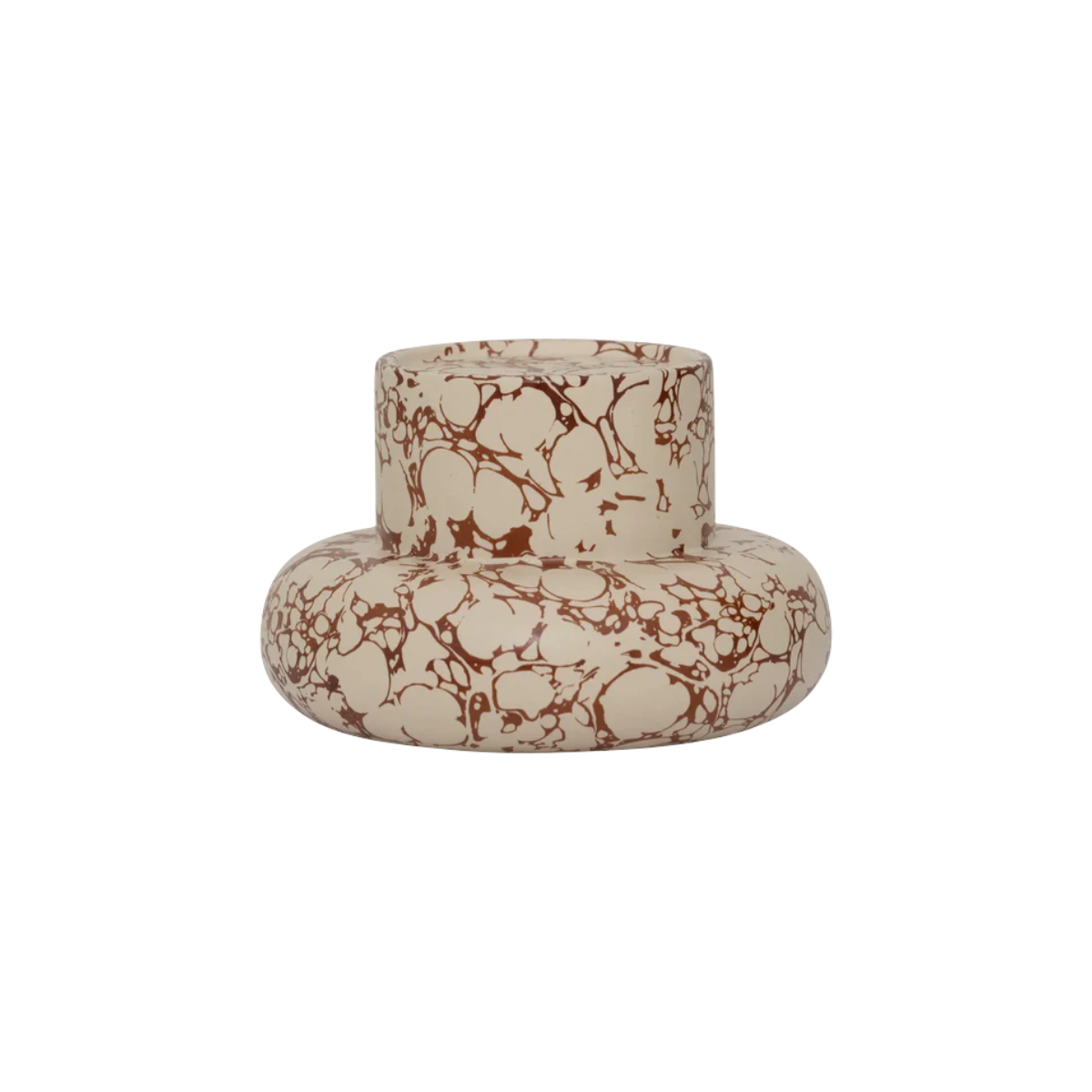 Deze kandelaar is echt een uniek object door de marmerachtige print en de organische vorm!