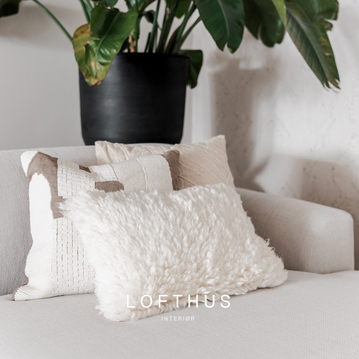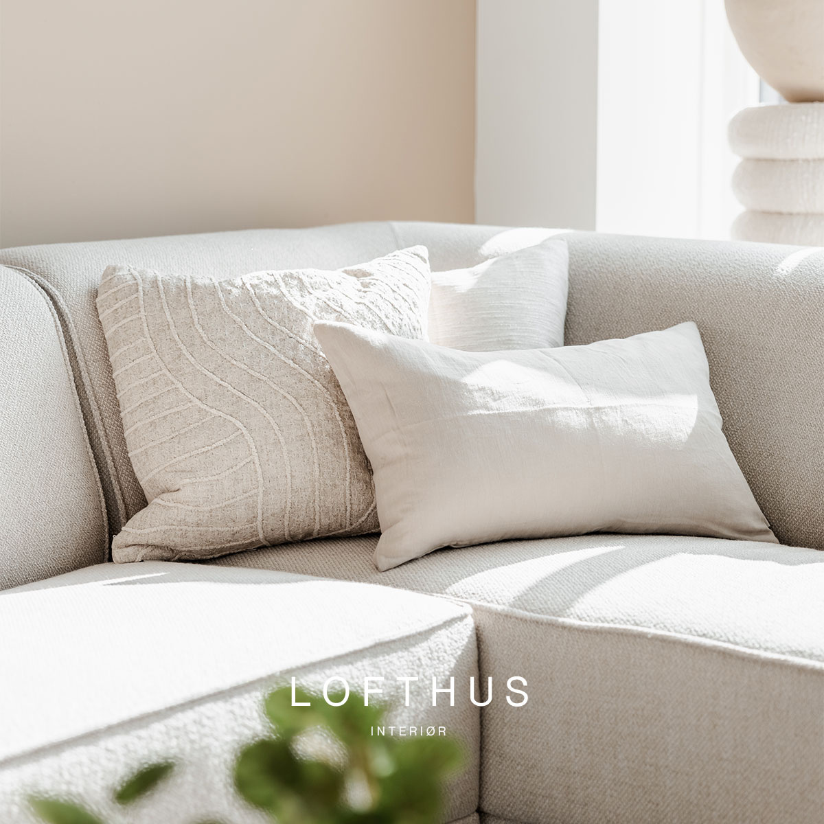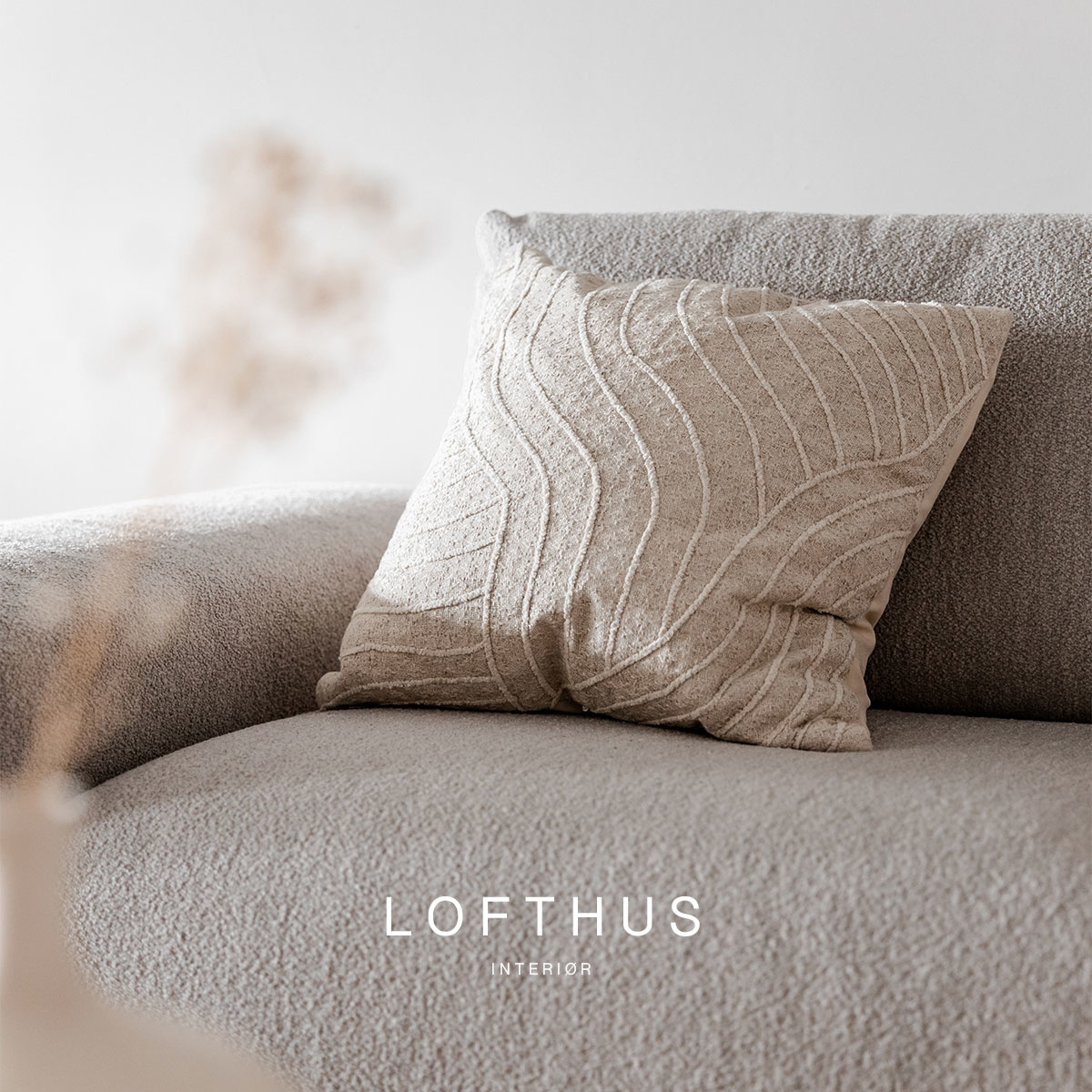 Het naturel kleurige sierkussen Lynn is gemaakt van katoen en linnen met op de voorzijde een getuft glooiend lijnpatroon. De katoenen achterzijde is uni naturel van kleur.