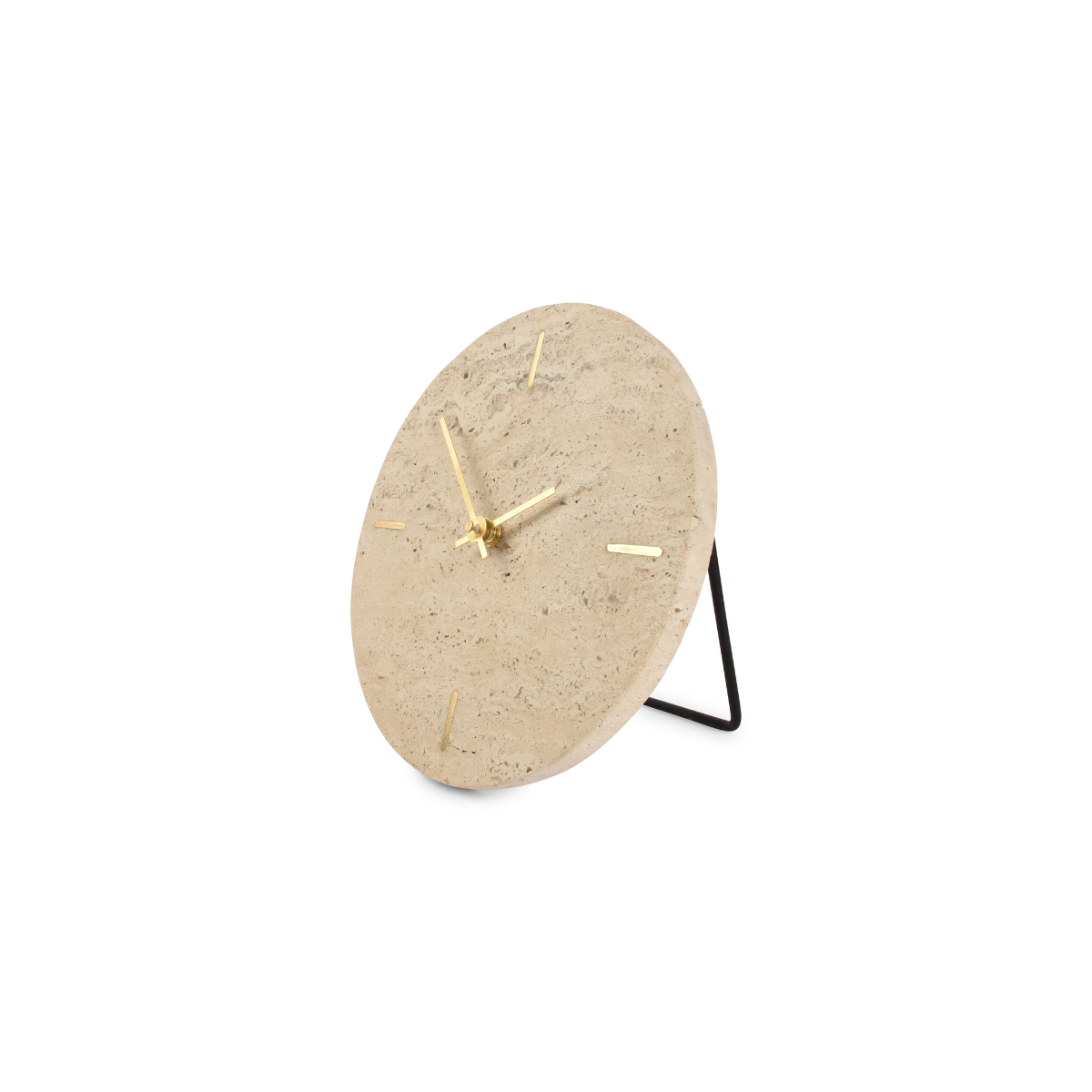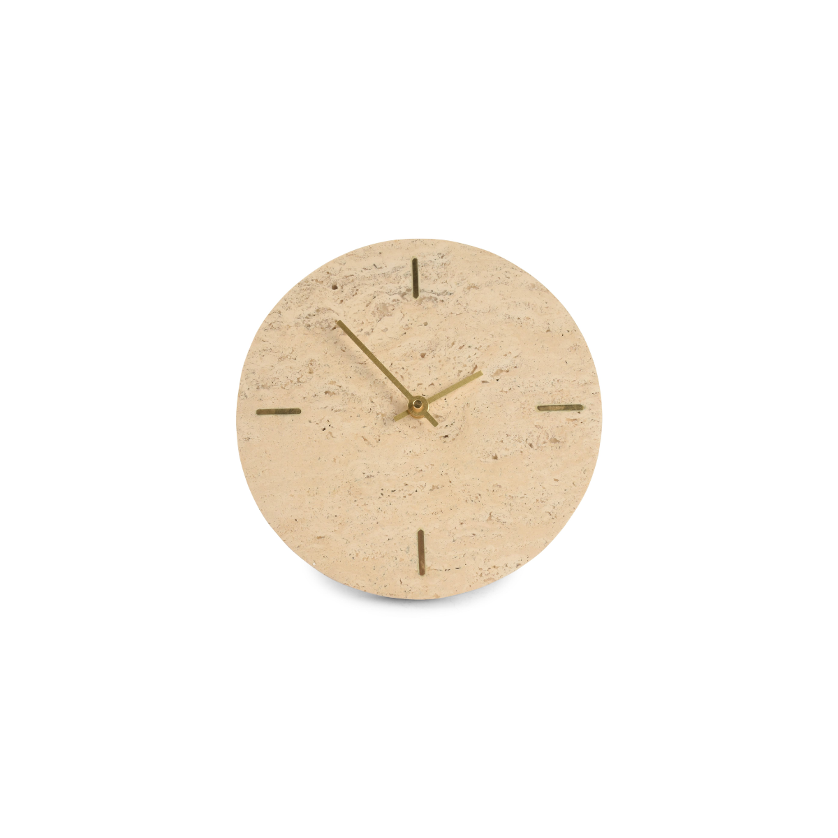 Deze klok is de perfecte combinatie van klassieke en modern doordat die gemaakt is van travertijn.