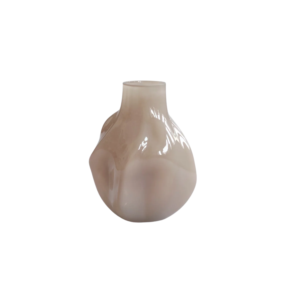 Deze glazen vaas valt direct op door zijn organische vorm en diepe, warme kleur. Het ontwerp heeft natuurlijke vormen en voegt een artistiek accent toe aan elk interieur. De glanzende afwerking en vloeiende lijnen geven de vaas een moderne, maar ook tijdloze uitstraling.