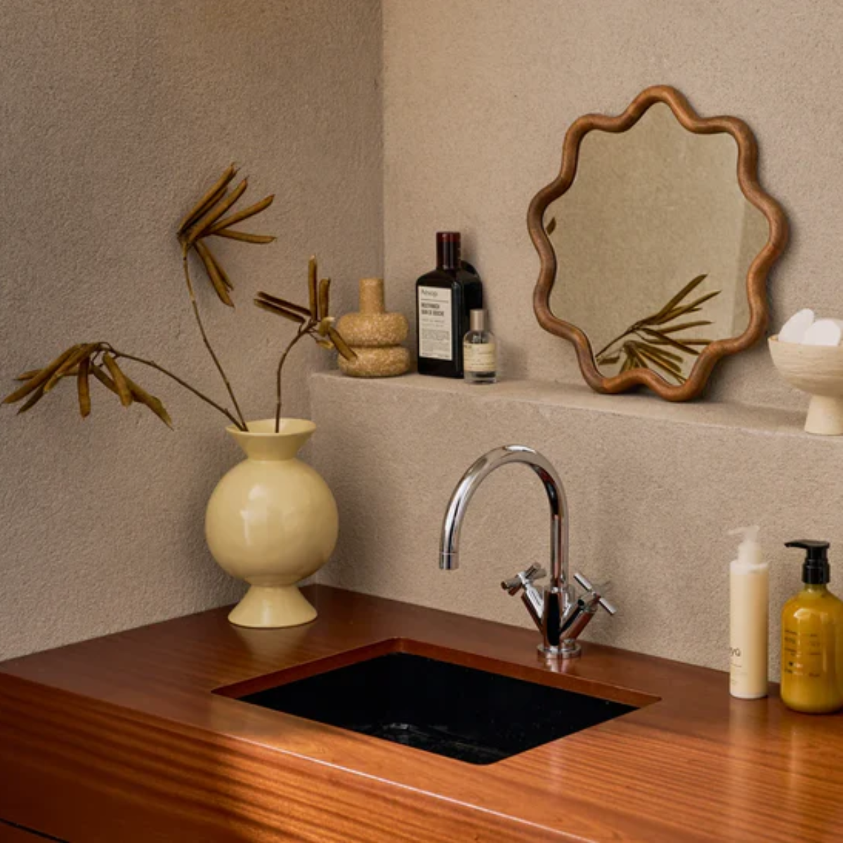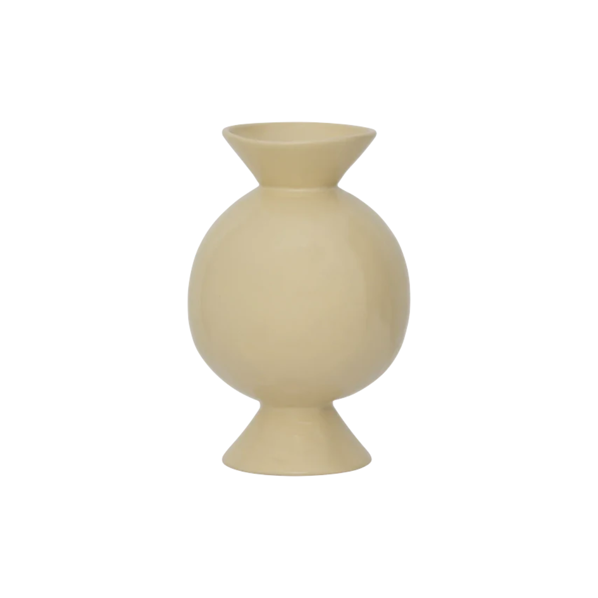 Deze keramieken vaas is een prachtig object door de organische vormen en de zachtgele kleur.