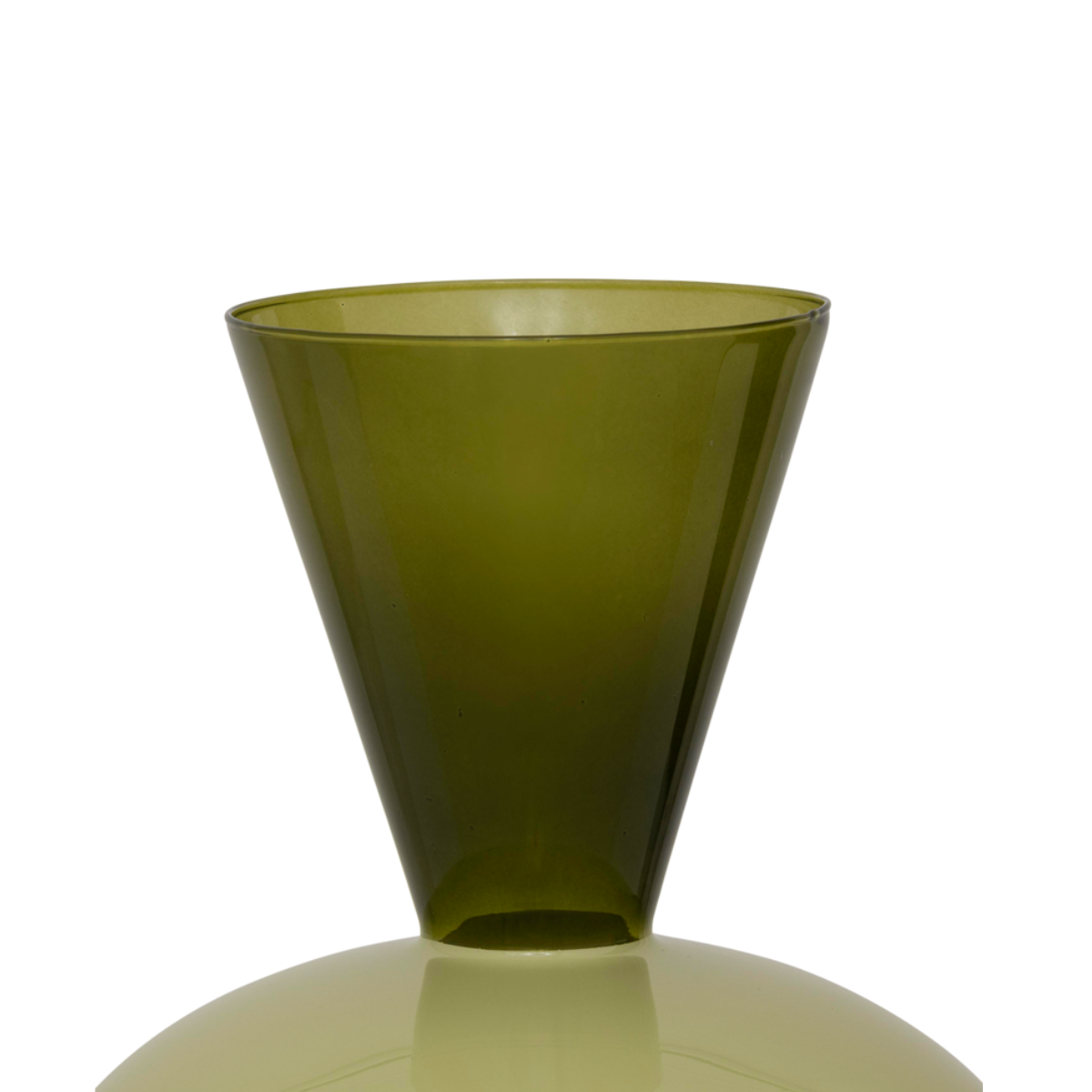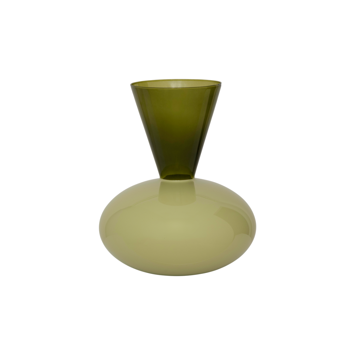 Deze colourblock vaas van gerecycled glas is een stijlvolle eyecatcher voor elk interieur. Het ondoorzichtige bolle deel in de warme kleur beechnut wordt elegant gecombineerd met een transparante, uitlopende hals. De mix van groene tinten geven de vaas een verfijnde en moderne uitstraling, perfect voor op een tafel, dressoir of vensterbank.