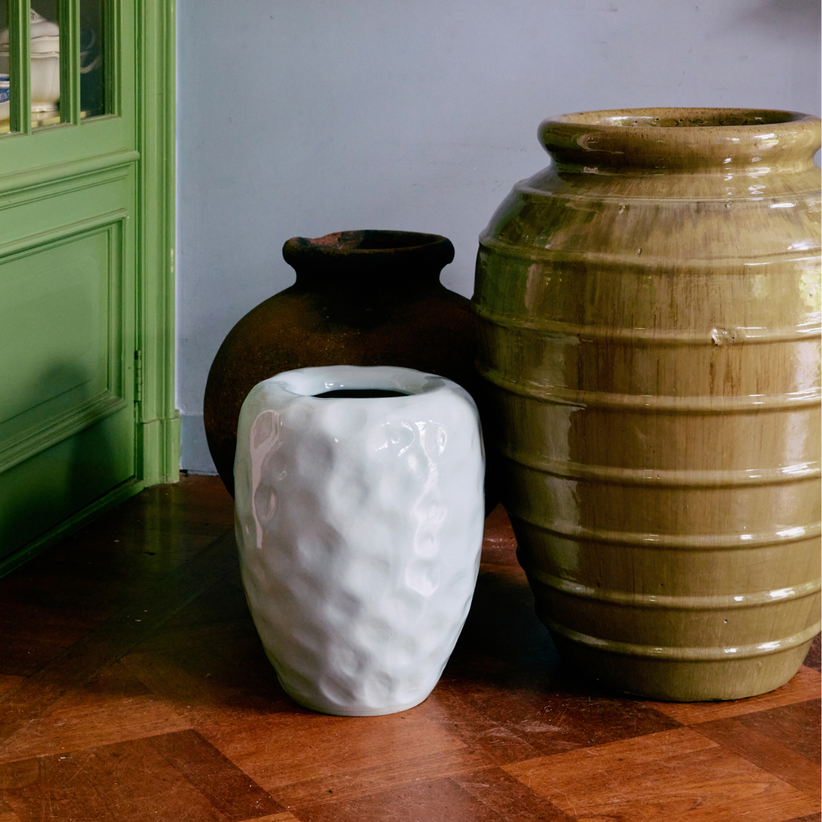 Een vloervaas met karakter; zacht mintgroen, handgemaakt en elegant in zijn eenvoud. Perfect met een paar takken of gewoon zoals hij is — een subtiele eyecatcher die sfeer brengt in elke ruimte.